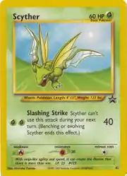 Scyther (Japanese: ストライク Strike) is a Grass-type Basic Pokémon card. It was first released as one of the Wizards Black Star Promos.