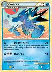 Seadra (Japanese: シードラ Seadra) is a Water-type Stage 1 Pokémon card. It is part of the Unleashed expansion.