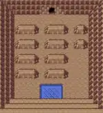 The first room contains ten mounds of earth, marked with braille that lists the alphabet. The braille on the door says to use Dig. This opens an entrance to the second room, if performed while standing near the door.