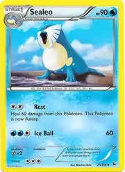 Rest and Ice Ball are both moves in the Pokémon games that Sealeo can learn. This card's Pokédex entry comes from Pokémon X.