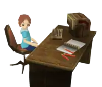 - "Waaah! You startled me! Oh, it's you guys again! Oh, yes. I didn't tell you my name yet. I'm Marcia's friend. My name is Secc. I'm glad we met you! I'm trying to get in touch with kids in other towns to gather information. After all, this is the age of networking!"