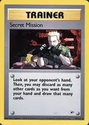 Secret Mission (Japanese: スパイ作戦 Espionage Operation) is a Trainer card. It was first released as part of the Gym Heroes expansion.
