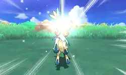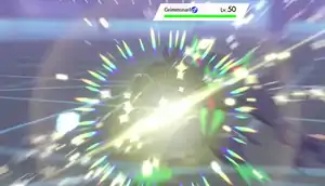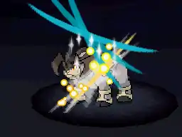Resolute Form Keldeo's body glows yellow, and a giant yellow blade of energy forms from its horn. Resolute Form Keldeo then uses the blade to slice or stab the opponent. | ||