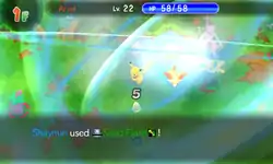 | Sky Forme Shaymin fires seeds at the opponent. | |||