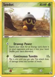 Seedot (Japanese: タネボー Taneboh) is a Grass-type Basic Pokémon card. It is part of the EX Legend Maker expansion.