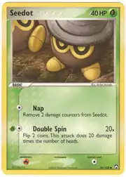 Seedot (Japanese: タネボー Taneboh) is a Grass-type Basic Pokémon card. It is part of the EX Power Keepers expansion.