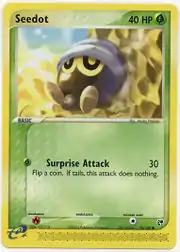 Seedot (Japanese: タネボー Taneboh) is a Grass-type Basic Pokémon card. It is part of the EX Sandstorm expansion.