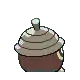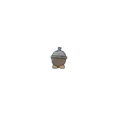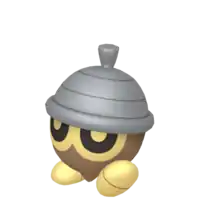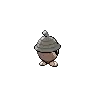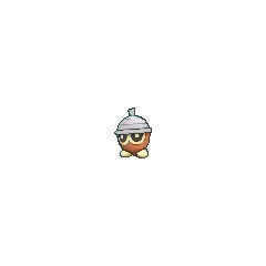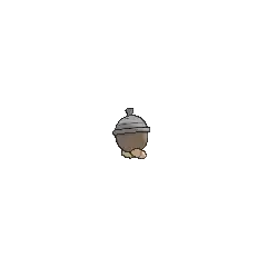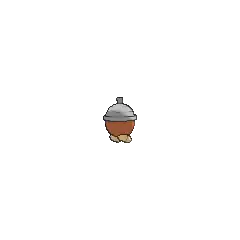 Seedot is a small, brown Pokémon that resembles an acorn. A beige, mask-like pattern covers its large black eyes, and it has two beige feet. It has a gray "cap" with a short stem on top of its head. The stem is used to hang from tree branches in its forest home. While hanging, this Pokémon absorbs moisture and nutrients from the tree until it becomes too heavy and falls to the ground. The more it drinks, the glossier its body becomes. Additionally, Seedot polishes itself with leaves once daily. If it remains still, it can be mistaken for a nut and startles others by moving suddenly. Pidgey is a natural predator of Seedot.