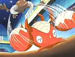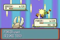 Pinsir grabs the opponent in its horns, jumps into the air and flings its head back, throwing the opponent into the floor behind it. | ||