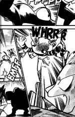 Machoke grabs the opponent, jumps into the air and spins around in a circle. After a bit, Machoke throws the opponent to the ground. | ||