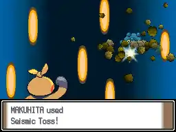 | Makuhita grabs the opponent, jumps into the air and does many front flips. When it comes down, it slams the opponent into the ground. | |||