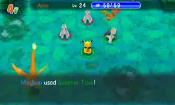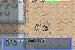 In Red Rescue Team and Blue Rescue Team, Seismic Toss is a move with 22PP and 100% accuracy. The user will attack enemy in the front, dealing damage equal to the user's level.