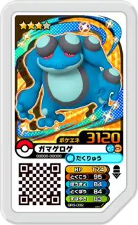 Seismitoad (Japanese: ガマゲロゲ Gamageroge) is a Grade 3 Pokémon Ga-Olé disk. It is part of the third Grand Rush set.