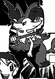 Fennekin has extremely similar interests as Serena. In A Pokévision of Things to Come! and A Battle by Any Other Name!, she enjoyed cooking and dressing up, particularly with Serena, and has a liking for Poké Puffs and other sweets such as macarons. In The Bamboozling Forest!, she also likes to snack on branches, which is characteristic of her species. As a Braixen, she is also choosy, gaining this trait indirectly from Serena after she made the promise of becoming Kalos Queen by using her previous branch. As a result, she wasn't willing to give it up at first despite it being broken and her having no other choice.