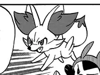 In Pathways to Performance Partnering!, Fennekin performed with Pancham when Serena was demonstrating to her friends and Nini. She used Flamethrower to create fire rings while Pancham jumped through them. To end their performance, Fennekin used Flamethrower while Pancham used Dark Pulse to create a firestorm. Nini mentioned Pancham's movements weren't compatible with Fennekin's dance. After performing in Jessie's dancing training, she was captured along with Pancham and Chespin as well as Nini's Smoochum and Farfetch'd, in a balloon by Team Rocket, but it broke after Chespin and Pancham fought. During her escape, she was not impressed with Pancham and Chespin's squabbling, after being found by Team Rocket, she was defeated by Pumpkaboo's Shadow Ball but was saved when Chespin and Pancham, who had been squabbling for a while, temporarily teamed up to defeat Team Rocket. She was later reunited with her Trainer.