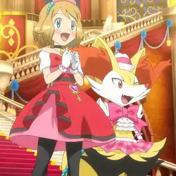 In Performing with Fiery Charm!, Braixen was used in the Dendemille Rookie Class Showcase. During the Theme Performance, she was seen helping Serena bake some Poké Puffs for the judging panel. Afterwards, she was used in the Freestyle Performance, where she put on a show along with Pancham. Their performance was well received by the audience and, as a result, they got enough votes to put Serena ahead of her competitors. After that, they were declared the winners, earning Serena her first Princess Key.