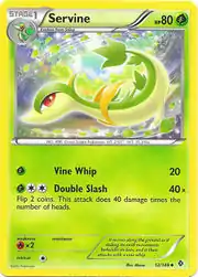 Vine Whip is a move in the Pokémon games that Servine can learn. Double Slash is a variation of Slash, a move that Servine cannot learn. This card's Pokédex entry comes from Pokémon Black.