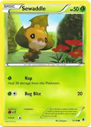 Bug Bite is a move in the Pokémon games that Sewaddle can learn. This card's Pokédex entry comes from Pokémon X.