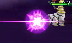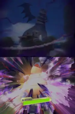 The middle of Origin Forme Giratina's head crest glows light blue and Origin Forme Giratina's body turns black and disappears as soon as an attack is about to hit it. Seconds later, it reappears behind the opponent and attacks it. | ||