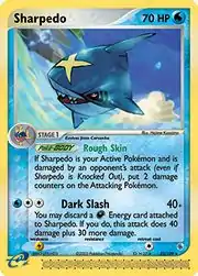 Sharpedo (Japanese: サメハダー Samehader) is a Water-type Stage 1 Pokémon card. It is part of the EX Ruby & Sapphire expansion.