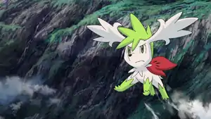 After Shaymin was accidentally pulled into the Reverse World by Giratina and got caught in the middle of the battle between Dialga and Giratina, it used Seed Flare to create a portal out of the dimension. This strange experience caused Shaymin to become terrified of almost everything. It also constantly referred to Gracidea, and was convinced that Giratina wanted to eat it when the Renegade Pokémon really wanted to use Shaymin to open a portal to the real world.