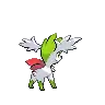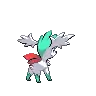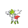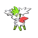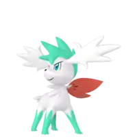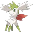 NA: When in its Land Forme, this Pokémon sports a fetching pink flower. In Sky Forme, it can take to the air with ease. This Legendary Pokémon is hard to find, but it can sense anyone with a grateful heart. This ability is where the name "Gratitude Pokémon" comes from.
