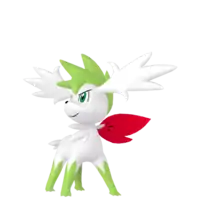 While it is not known to evolve into or from another Pokémon, Shaymin has a second Forme activated by using a Gracidea flower in the daytime. Its original Forme, Land Forme, will then become the Grass/Flying-type Sky Forme. Shaymin's Sky Forme will revert into and remain in its Land Forme during the night or when frozen. Other circumstances may also cause it to revert.