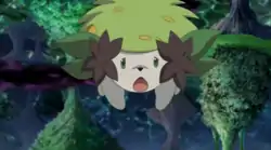 Shaymin debuted in Giratina and the Sky Warrior, where it was fleeing from Giratina. It thought that Giratina wanted to eat it, but in reality, the Renegade Pokémon wanted to use Shaymin's Seed Flare to open a portal from the Reverse World to the real world. It appeared in both of its Formes in the movie. This Shaymin had the ability to talk via telepathy.