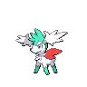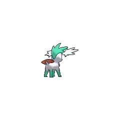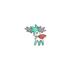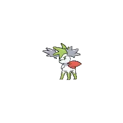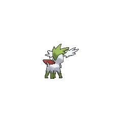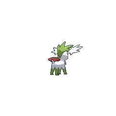 In Sky Forme, it has a slender, canine appearance like that of a small reindeer. The fur on its back becomes a mohawk, and it has a red flower petal on the left side of its neck, resembling a scarf or cape. It has flat, white ears resembling wings, a small tuft of fur on the front of its neck, and a stumpy tail. Shaymin will change into Sky Forme and back if it touches a Gracidea. It reverts to Land Forme at night or if it is frozen. Shaymin can instantly purify any polluted area of all impurities in the air and transform it into a lush field of flowers. It takes in the polluted air, purifies it inside its body, breaks it down into water and light, and releases the purified substance in a violent, explosive burst. Its power varies based on the type of pollution absorbed. Shaymin can also communicate with telepathy and sense the gratitude of others.