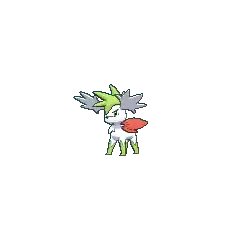 Each season, Shaymin gathers with others in a flower field somewhere and migrates from there. This behavior is called Flower Carrying because a new field of flowers grow where it lands. Shaymin is also attracted to areas where there is a lot of gratitude. Its personality is almost opposite with each form: in Land Forme, it is shy and easily scared, while in Sky Forme, it is courageous and playful. If wet, it shakes itself to dry itself off, and exhibits the behavior of scratching itself with a hind leg. Shaymin lives in fields of flowers. Since it camouflages by curling itself up, it can easily escape people's notice. It has been seen liking sweet food. Shaymin is the only known Pokémon to know Seed Flare.