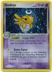 Shedinja (Japanese: ヌケニン Nukenin) is a Psychic-type Stage 1 Pokémon card. It is part of the EX Deoxys expansion.
