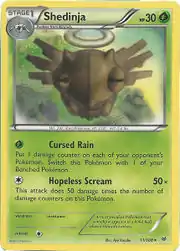 Shedinja (Japanese: ヌケニン Nukenin) is a Grass-type Stage 1 Pokémon card. It was first released as part of the Roaring Skies expansion.