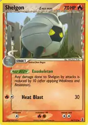 Shelgon δ (Japanese: コモルー δ Komoruu δ) is a Fire-type Stage 1 Pokémon card. It is part of the EX Delta Species expansion.
