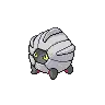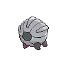 Shelgon is a quadrupedal Pokémon that resembles a pupal stage. There are bone structures covering its body, which form a shell with two openings and three ridges on top. One opening is in front, revealing two yellow eyes, while the other opening is in the back. This bony covering repels enemy attacks, but it makes Shelgon heavy. Its gray legs are visible protruding from underneath the shell, each with a short red stripe on the inner surface.