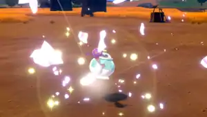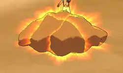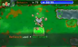 Dwebble exits its shell and begins to glow white. The energy then cracks and breaks off of Dwebble's body, causing it to glow red. When Dwebble uses another attack while this is in effect, the broken-off energy will fuse with the attack, giving it more power and speed. | ||