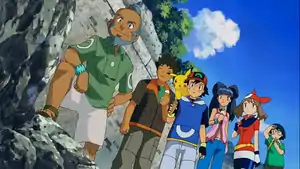 Everyone later returned to port, where Shep's shipmates were waiting. Shep and the others then returned to their travel vehicle, and later, he waved goodbye to Ash and his friends.