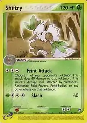 Shiftry (Japanese: ダーテング Dirteng) is a Grass-type Stage 2 Pokémon card. It is part of the EX Sandstorm expansion.
