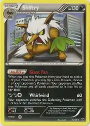 - Shiftry - When evolving a Pokémon into Shiftry, its Giant Fan Ability can shuffle an opposing Pokémon and all cards attached to it back to the opponent's deck with a coinflip.