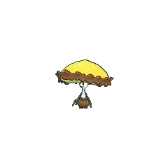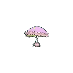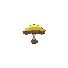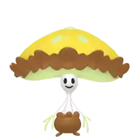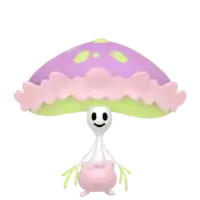 This Pokémon competes with Parasect over territory; their fights often leave the area coated in spores. In anime, Shiinotic has been shown illuminating the spot and gills on its mushroom. This strange light can confuse people who enter its habitat, causing them to lose their way. Additionally, the flickering spore it releases can cause drowsiness. It takes advantage of sleeping prey by sucking their energy through the tips of its arms. It can also transmit energy to weakened Shiinotic through the same method.