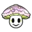 Shiinotic is a Pokémon that resembles a large mushroom. It has a slim, white body similar to a stalk, and a large purple mushroom cap on its head. It has black eyes with pale green half-circle markings on the outer sides and a thick, black mouth. The ends of its long, thin arms split into three pale green filaments that act as fingers. The lower part of its body and stubby feet are covered in a fluffy pink substance. The mushroom cap on its head has a fluffy pink rim, pale green bumps on top, and a pale green, gilled underside.