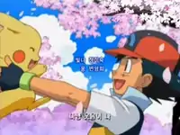 The word "Pokémon" in English flashes by in different colors of the rainbow. The camera then scrolls by the characters and their Pokémon, first Ash's, then Dawn's, then Brock's. Ash throws a Poké Ball, then Brock, then Dawn in a blue dress. The camera switches to Ash and Pikachu under a cherry blossom tree with some of the flowers falling off the tree and floating in the wind. Pikachu jumps on Ash and he picks Pikachu up. The two share a special moment.