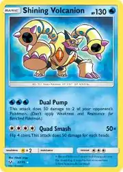 Shining Volcanion (Japanese: ひかるボルケニオン Shining Volcanion) is a Water-type Basic Pokémon card. It is part of the Shining Legends expansion.