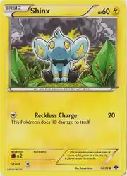 Shinx (Japanese: コリンク Kolink) is a Lightning-type Basic Pokémon card. It is part of the Next Destinies expansion.