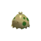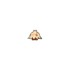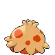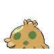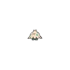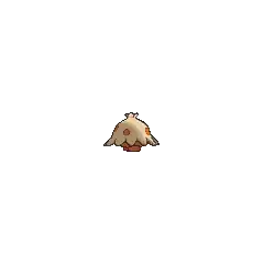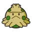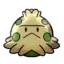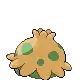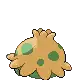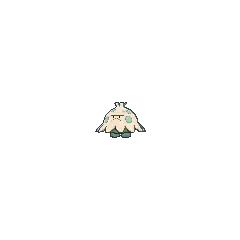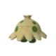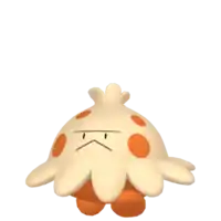 Shroomish is a small Pokémon similar to a mushroom. It has beady black eyes and a half-triangle-shaped mouth. Its upper body is beige with frilled segments along the bottom and a small opening at the top. There are green spots marking its upper body, while its lower body is completely green. It has small, round feet and no visible arms or hands. When it senses danger, it shakes its body and scatters toxic spores from the top of its head. These spores can make trees and weeds wilt and cause whole-body pain if inhaled. Shroomish lives in tropical forests. During the day, it hides under fallen leaves in the shade. It eats composted soil in forests, which is made up of fallen, rotten leaves.