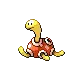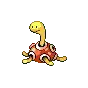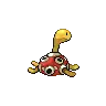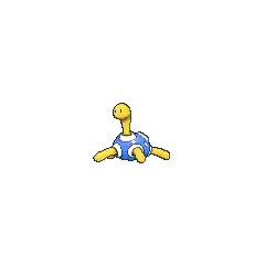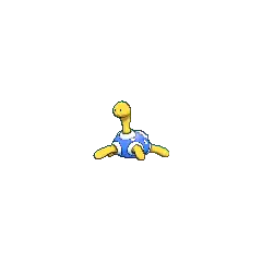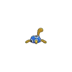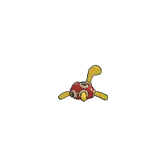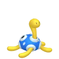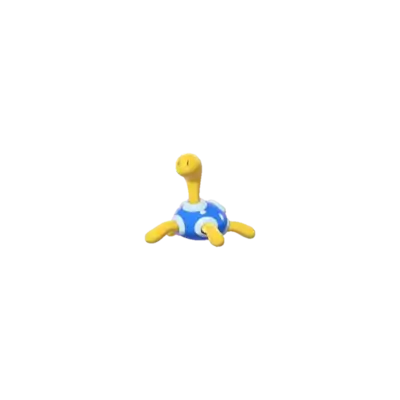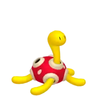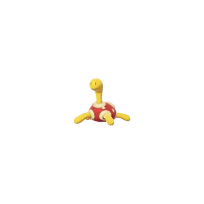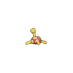 Shuckle is a Pokémon that resembles a small turtle. Its body is yellow and appears soft. Until they are in use, Shuckle's limbs appear limp. It is encased in a very hard red shell that has many holes in it. The holes in its shell are rimmed with white.