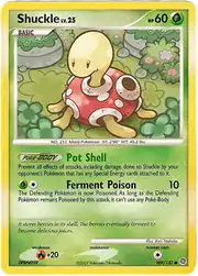 Shuckle (Japanese: ツボツボ Tsubotsubo) is a Grass-type Basic Pokémon card. It is part of the Secret Wonders expansion.