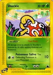 Shuckle (Japanese: ツボツボ Tsubotsubo) is a Grass-type Basic Pokémon card. It is part of the Skyridge expansion.