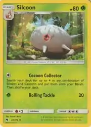 Silcoon (Japanese: カラサリス Karasalis) is a Grass-type Stage 1 Pokémon card. It is part of the Lost Thunder expansion.