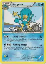 Simipour (Japanese: ヒヤッキー Hiyakkie) is a Water-type Stage 1 Pokémon card. It is part of the Emerging Powers expansion.