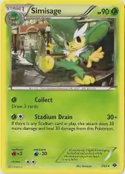 Simisage (Japanese: ヤナッキー Yanakkie) is a Grass-type Stage 1 Pokémon card. It is part of the Next Destinies expansion.
